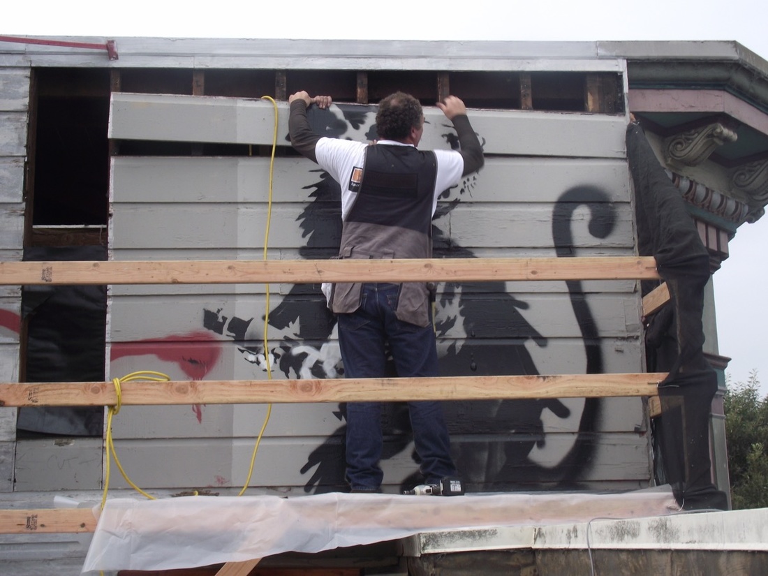 Removal of Banksy’s “Haight Street Rat.” Image courtesy of Candy Factory Films and Parade Deck Films.