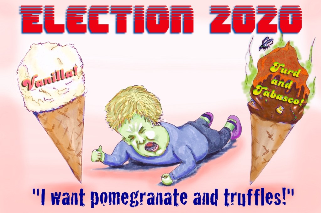 And let’s examine consequences. Those who complain the most about the system, the process, and the lack of more political parties to choose from are too often white, educated, middle class people with jobs. They are not likely to truly suffer detention in an immigration lock-up, end up evicted, be without health care due to unemployment, be victimized as someone LGBT, or be beaten by an emboldened racist cop. These are just a few examples of the real damage Trump has ushered in that many of these people will not suffer. Hassan Minaj is not white, but he is famous (and I imagine) wealthy. It is disappointing that he and anyone else thinks it is ok to play the middle of the field if one claims to believe in human rights. If one asks someone if he or she would vote for MLK sooner than Biden, what would the most likely response be? Martin Luther King Jr. was an alleged philanderer. What does one do with that information? Is he better or worse than Biden? It is fortunately hypothetical, but this coming election is not. Living in the hypothetical allows entropy to fester under the guise of idealistic purity, and as a result too many good people (and the environment) suffers. Biden may not be Yoda, but it is easy to agree that Trump is one of the most horrible things to happen on planet Earth. This is like a child at the ice cream store who has a choice between Vanilla (boring and simple) and Turdcream and Tabasco. The kid stamps his feet and screams he wants more choices right before the store closes. Eat the damned Vanilla, ya spoiled brat, and then seriously work on getting the other better flavors tomorrow! Let’s get Turdcream and Tabasco off the f><king menu!